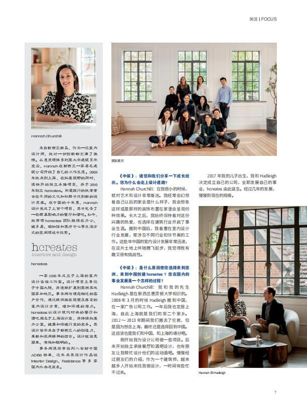 来自新西兰南岛,作为一位室内设计师,她对一切创新都充满了激情。从惠灵顿维多利亚大学建筑系毕业后,Hannah 在新西兰一家著名建筑公司开始了自己的工作生涯。2009年她来到上海,在拓展视野的同时,很快开始独立承接项目,并于 2010年创立 hcreates。热爱旅行的她常常会在不同的文化和社群中找到新的设计灵感。在中国的十年里,Hannah设计完成了上百个项目,其中包含了一些颇具影响力的餐厅和酒吧。如今,她带领 hcreates 团队继续在办公、健身房、瑜伽馆和医疗中心等生活方式的空间领域中探索。