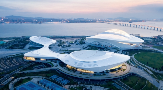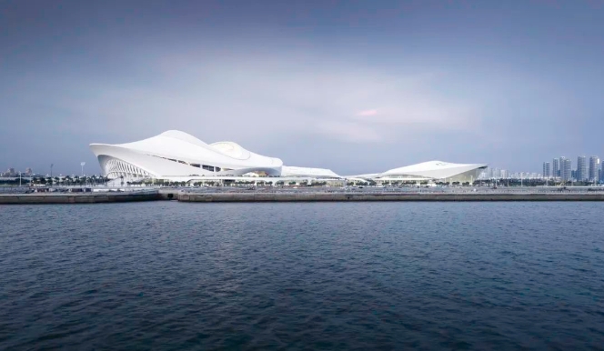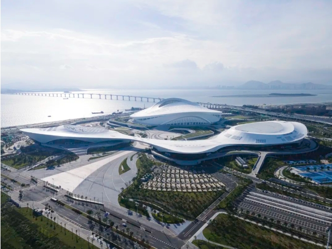 一场两馆、商业与酒店以及全天候向市民开放的“城市客厅”都围绕这个海湾线性展开。