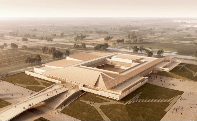 ▲ 汉魏洛阳国家遗址公园博物馆东南向鸟瞰效果图