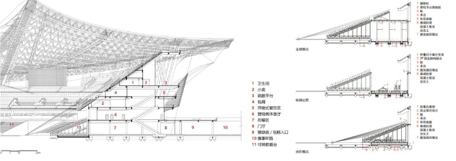 ▲ 体育场体育馆结构、表皮与空间构成