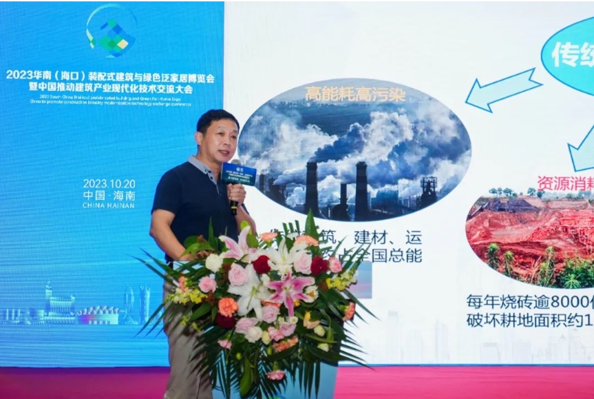 海南省住建厅副厅长刘联伟致辞并做《海南装配式装修政策体系与发展展望》演讲。他感谢了中国建筑装饰协会对本次大会的大力支持,然后详细介绍了海南的装配式建筑是如何从2017年以前的“一无所有”到今年的面积将超过新建建筑的70%,并从装配式内装修的角度讲述了海南装配式建筑的体系和发展展望。