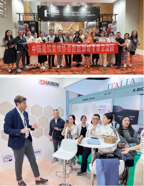 9月26日,考察团一行来到新加坡金沙国际中心,参加正在举行的2024年亚洲设计博览会。博览会展出了全球300多个当代的家具、室内设计和设计品牌。创新的家具、照明、厨具、浴室,尖端的室内解决方案吸引了考察团成员的目光。大家驻足欣赏并与工作人员积极洽谈交流。