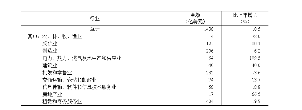 2024年对外非金融类直接投资额及其增长速度相关表格显示,建筑业2024年对外非金融类直接投资额及其增长速度分别为40亿美元和-40.0%。
