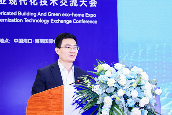 住房和城乡建设部标准定额司副司长白正盛、海南省临高县人民政府副县长陈方分别发言。广东省建设工程绿色与装配式发展协会会长、教授,高级工程师曹大燕发表了《装配式整体钢桁架预制构件混凝土结构技术体系(PCT 体系)技术优势及其应用实践》的演讲,三一筑工科技股份有限公司董事、总工程师兼设计研究院院长马云飞分享了《三一 SPCS 装配式建筑智能建造的探索与实践》的主题演讲。