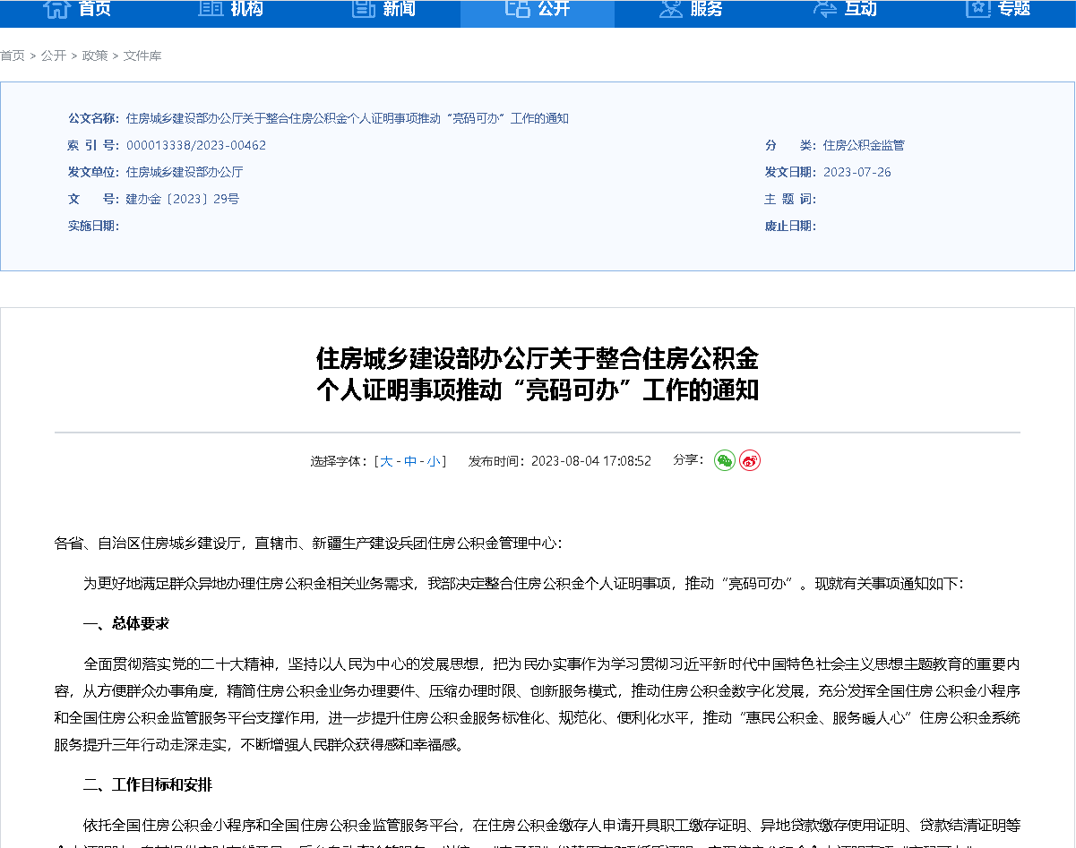 近日,住房城乡建设部印发通知,决定整合住房公积金个人证明事项,推动“亮码可办”。
