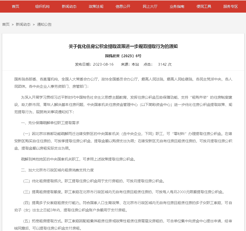 《通知》就充分保障疏解单位职工提取需求、加大北京市行政区域内租房消费支持力度、促进合理购房提取、防范和惩戒违规提取行为等事项做了具体说明,具体《通知》内容如下: