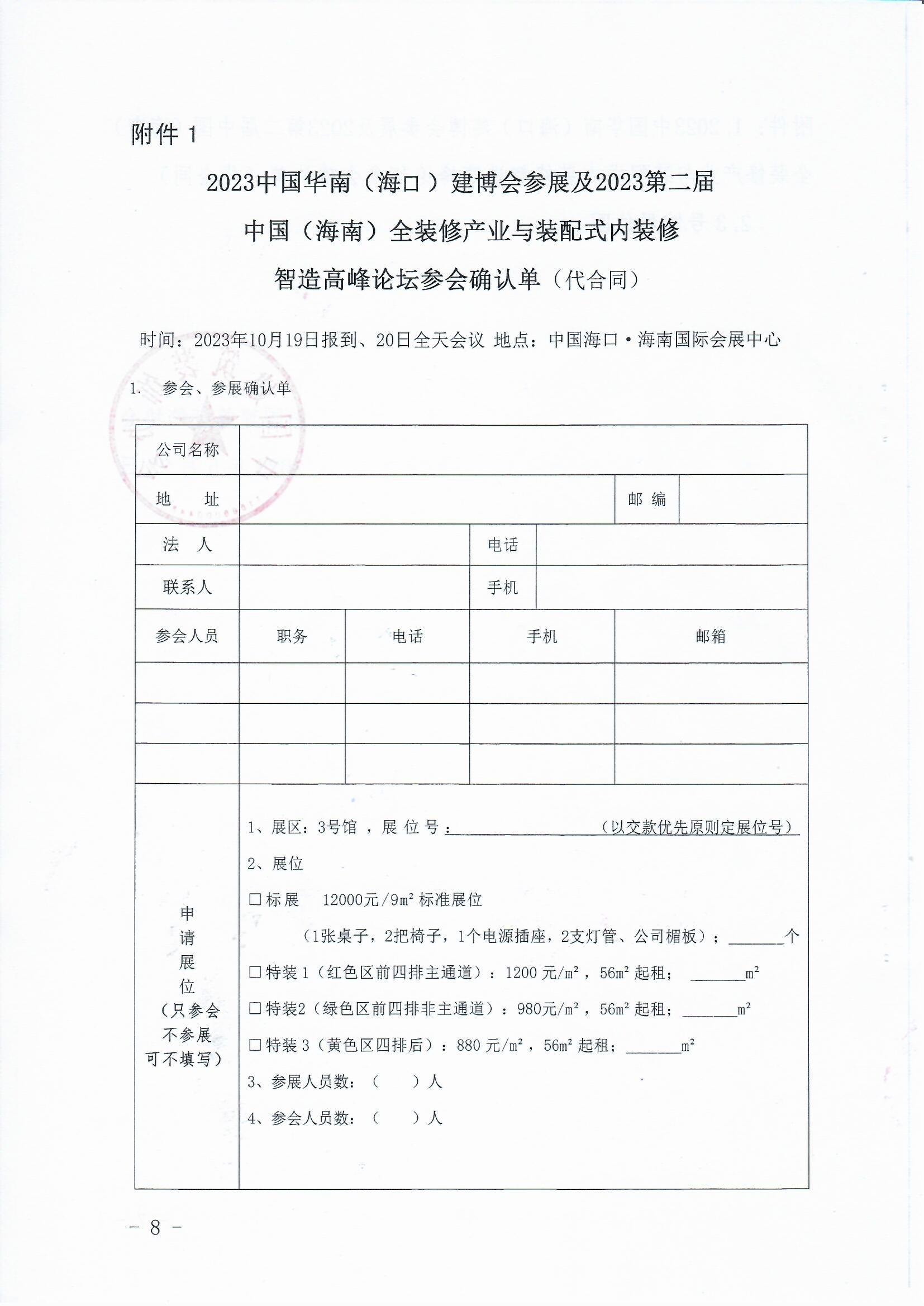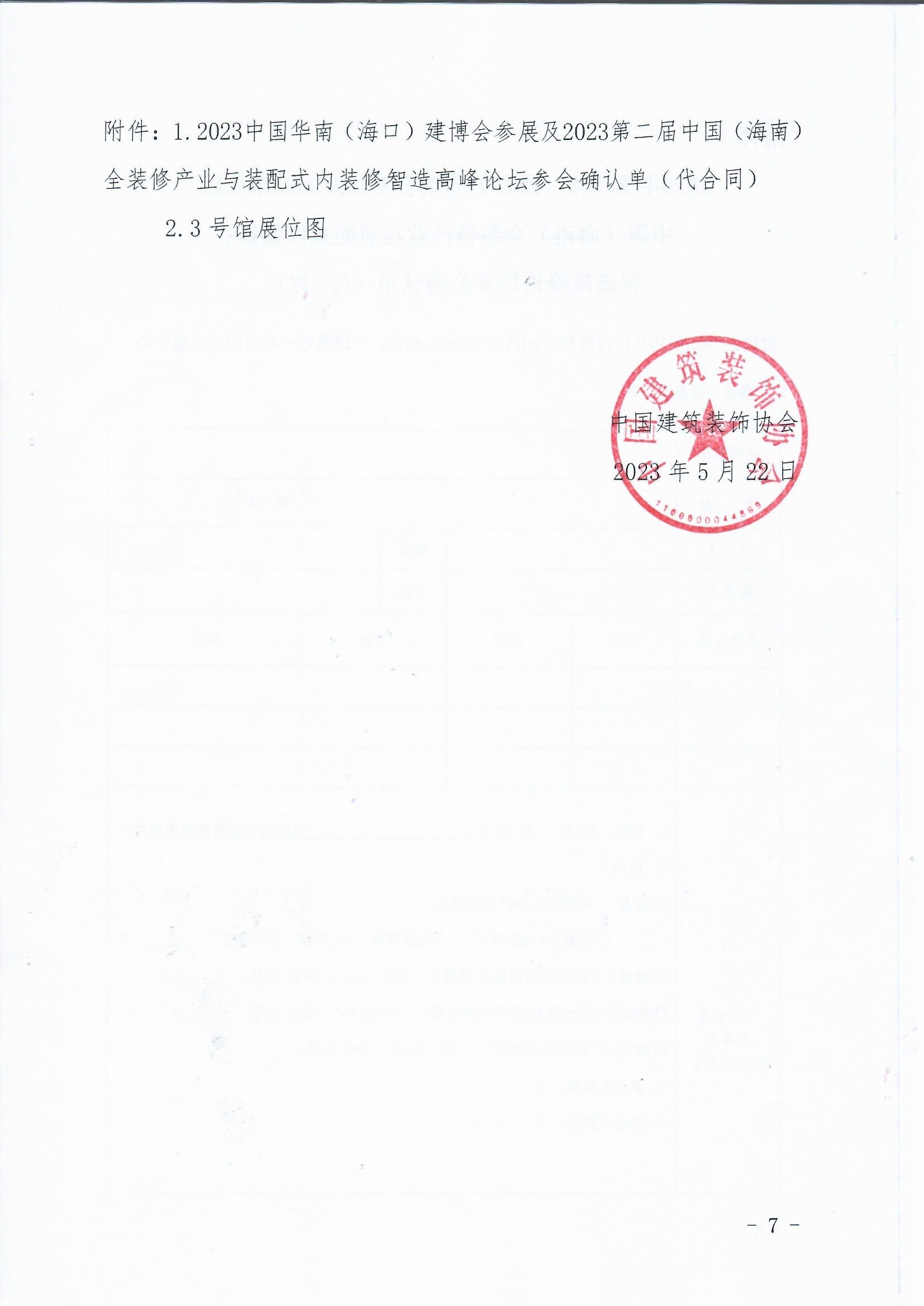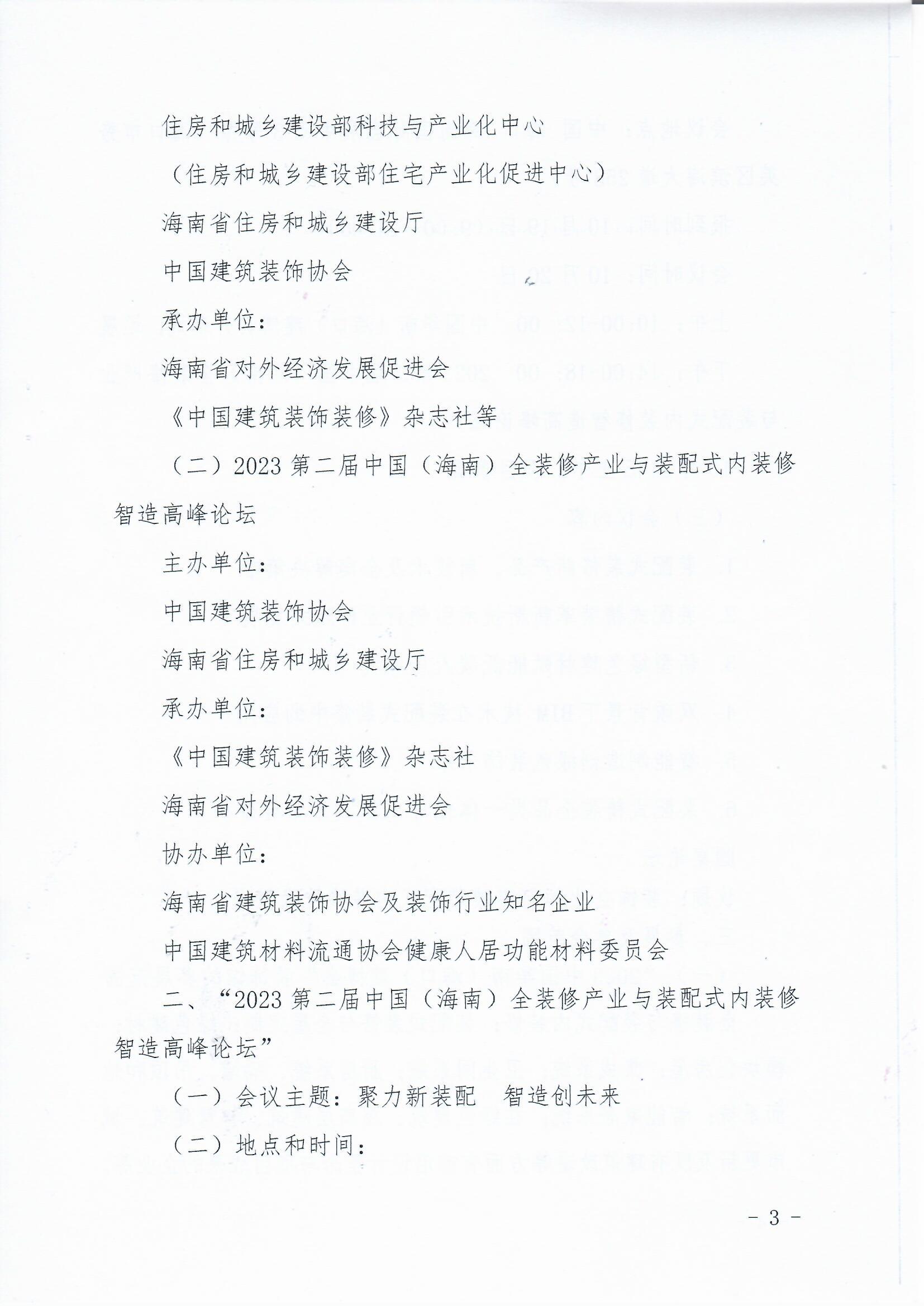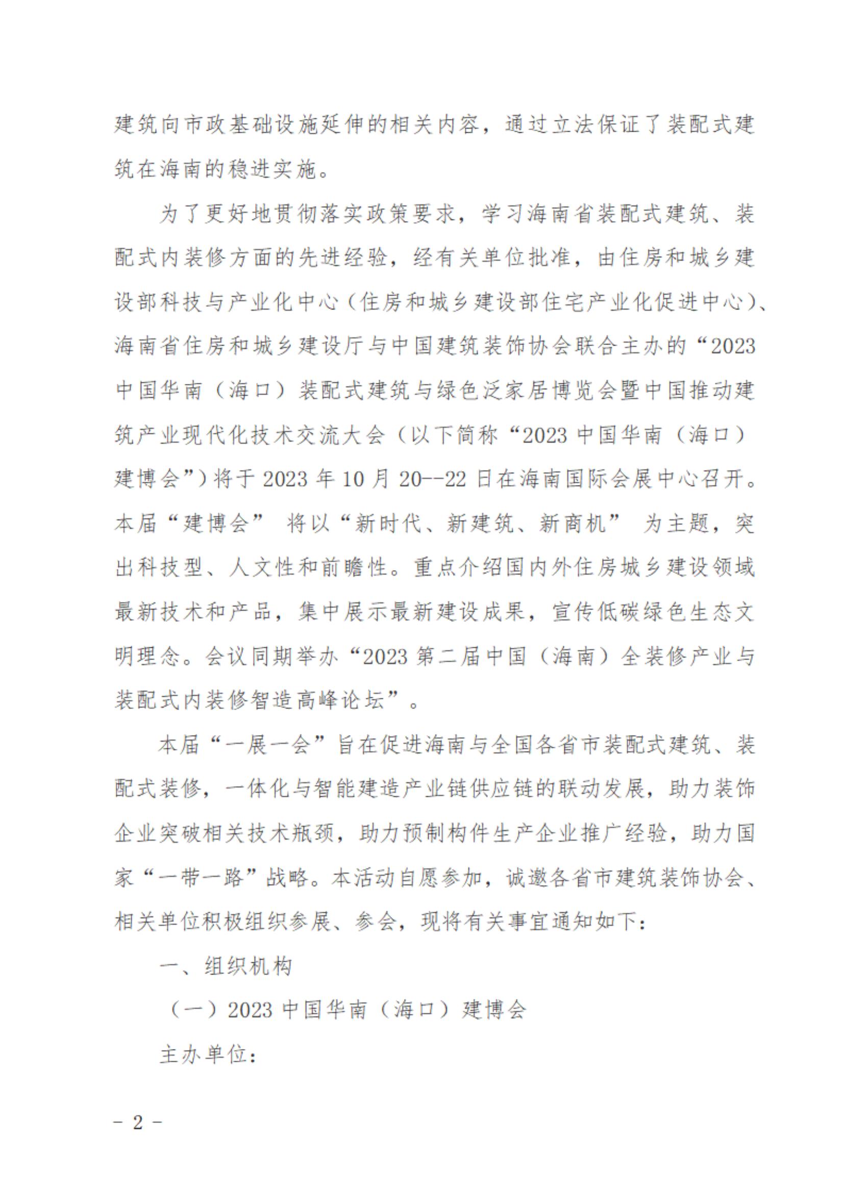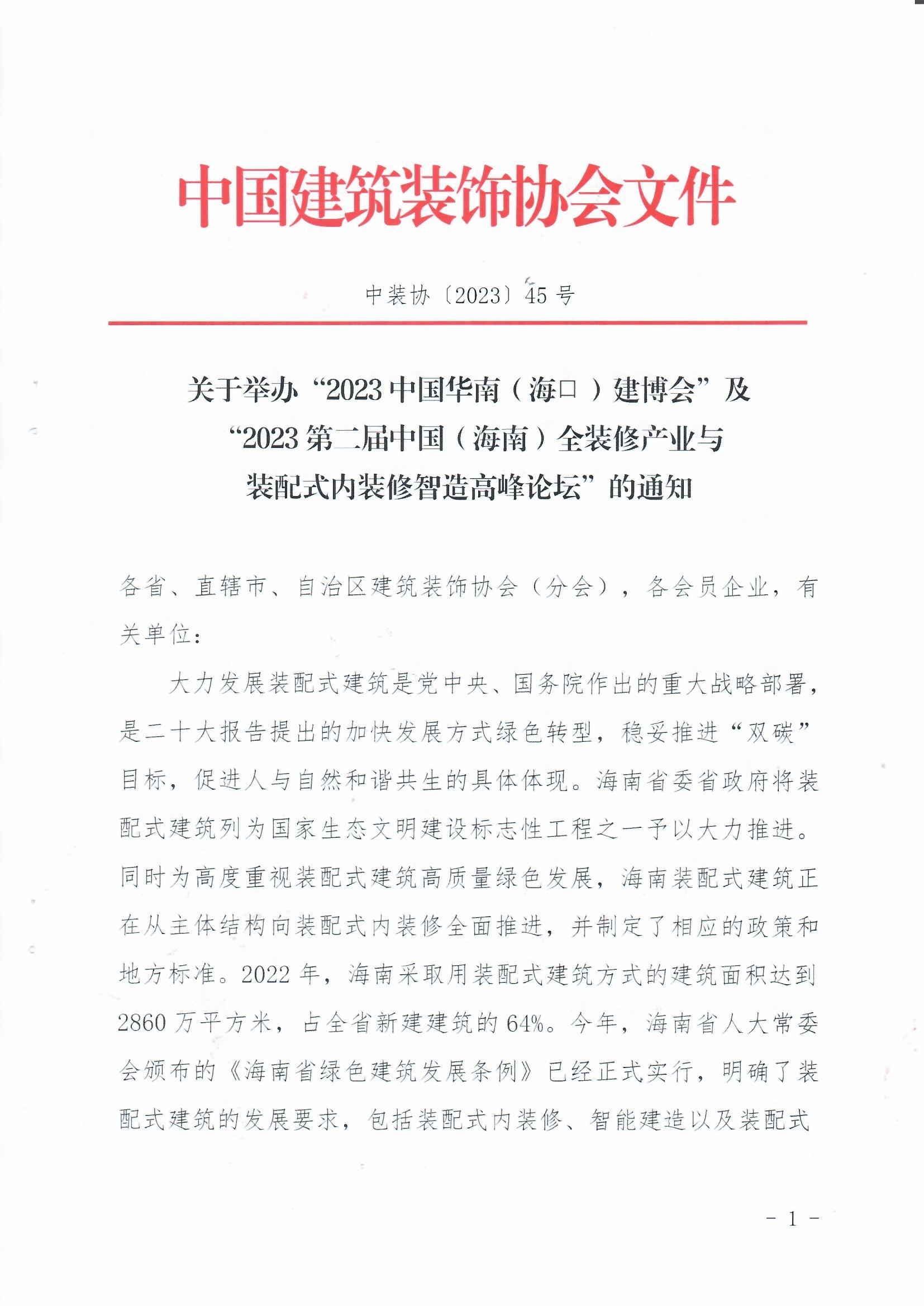 关于举办“2023中国华南(海口)建博会”及“2023 第二届中国(海南)全装修产业与装配式内装修智造高峰论坛”的通知