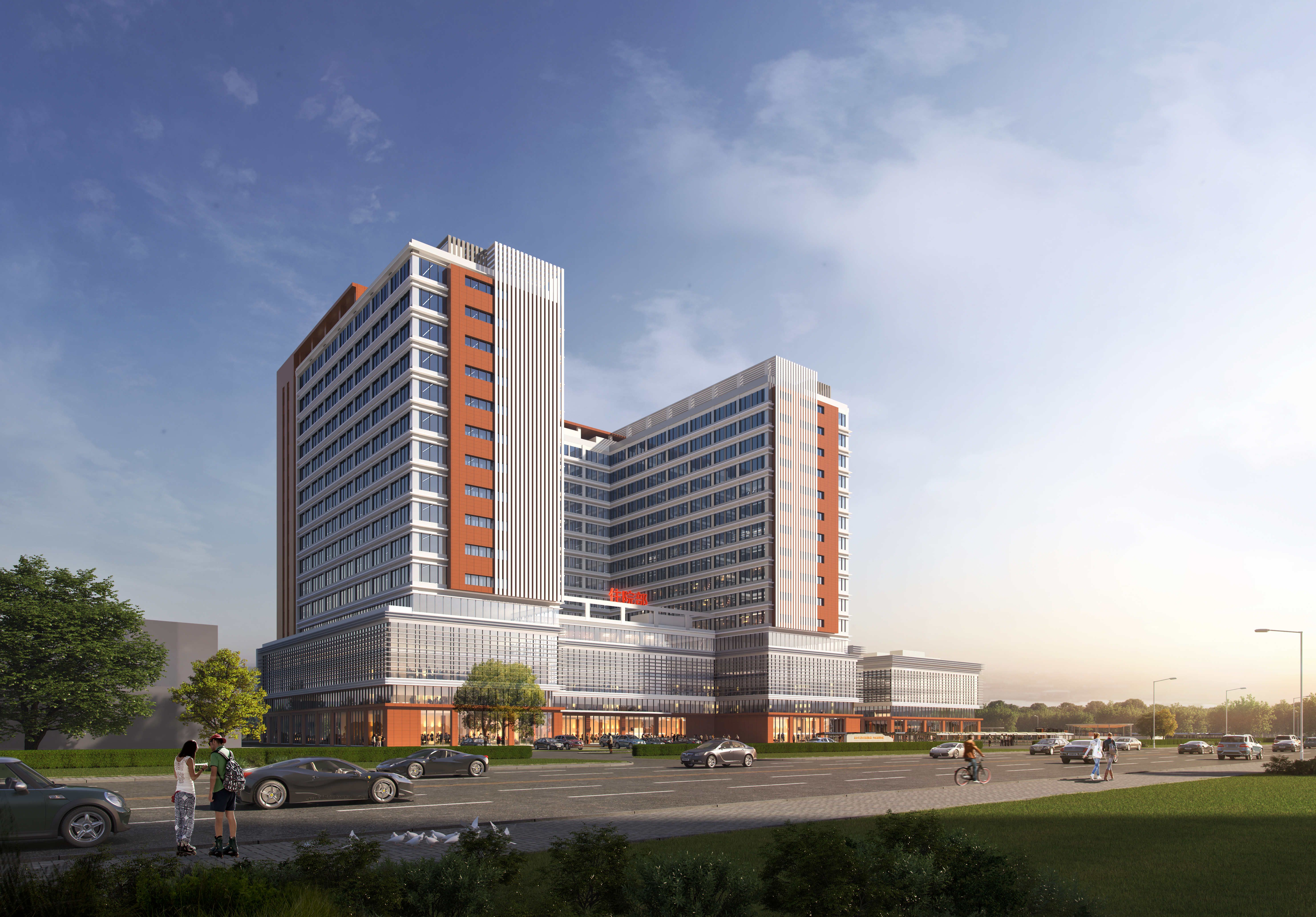 近日门诊楼、科研楼实现主体封顶。2024年5月中旬完成主体验收,6月底前完成内外墙抹灰、保温施工及16层病房楼封顶,整个项目全面转入二次结构施工和机电安装阶段。