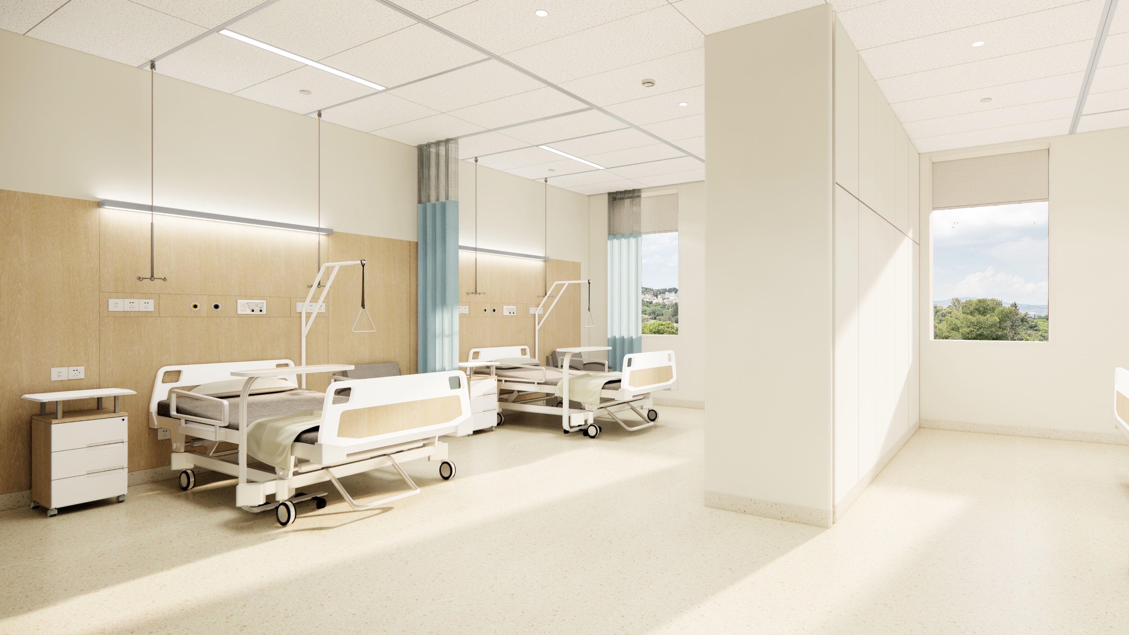 1)设计以患者为核心,配备先进设备与多学科联合治疗空间,确保创伤患者在最短时间内得到最优治疗,同时优化多维度医护空间布局,理顺医疗流程,为医护人员提供高品质工作环境。未来,该院区将打造为满足人性化体验、高效运营及未来发展趋势的新一代综合医疗中心。